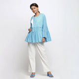 Hand Tie Dyed by the local artisans, this asymmetrical outerwear protects you from the sun while letting your skin breathe. In a bright and breezy shade of blue, it comes adorned with sea-shell buttons, and shirr at the waist. Comfy and light, just slide on your strappy slide sandals to enjoy the waves from sunrise to sunset.